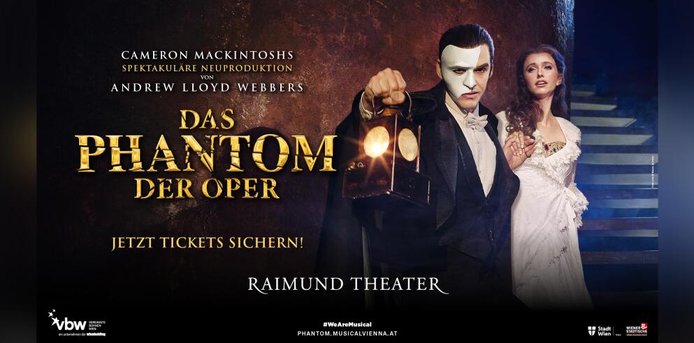Erlebe das berühmte Musical DAS PHANTOM DER OPER Wien im Raimund Theater. Lass dich von der brandneuen Inszenierung, den verblüffenden Effekten und der wunderschönen Musik verzaubern. Dies gelang bereits in den USA, Australien sowie Großbritannien. Nach dem großen Erfolg von CATS bringt das Raimund Theater eines der spektakulärsten Musicals in den deutschsprachigen Raum.