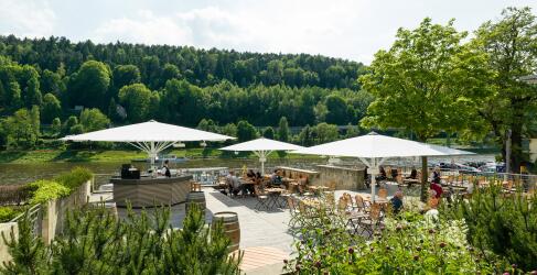- Das Restaurant Elbterrasse verbindet regionale Zutaten mit internationalen Rezepten zu köstlichen Leckereien. Diniere mit einem fantastischen Blick aus den Panoramafenstern auf die Elbe und die Felsen der Sächsischen Schweiz.