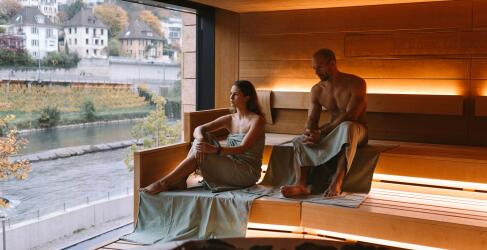 Du entspannst in der vielseitigen Thermenlandschaft mit Innen- und Außenbecken, genießt die abwechslungsreiche Saunawelt mit intensiven Aufgüssen und gönnst dir im orientalisch inspirierten Hamam besondere Verwöhnmomente. In eleganten Ruhezonen und dem hochwertigen Spa-Bereich kommst du vollkommen zur Ruhe.