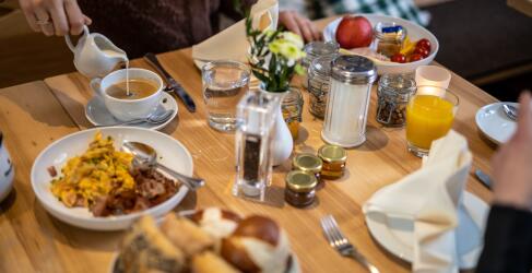 Tägliches Frühstück vom reichhaltigen Buffet mit regionalen Produkten
