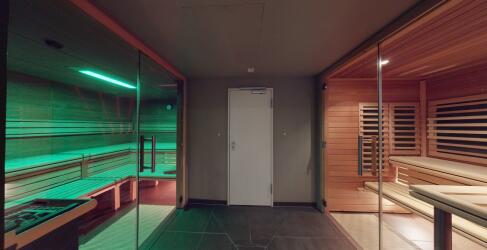 - Infrarot-Sauna mit Niedrig-Temperaturen und Erlebnisduschen