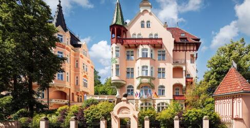 Mitten in dieser zauberhaften Stadt befindet sich die Villa Smetana, ein edles Boutique-Hotel, das eleganten Komfort mit historischem Charme und wohltuender Wellness verbindet. Nur wenige Gehminuten von den berühmten Thermalquellen entfernt, ist sie der ideale Ausgangspunkt, um die Wunder von Karlovy Vary zu erkunden und entspannte Wohlfühlmomente zu genießen.
