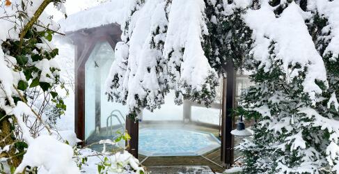 Der Wellnessbereich des Yachthotel Chiemsee beinhaltet einen Innenpool, einen Außenwhirlpool, eine Biosauna, eine Finnische Sauna, eine Infrarotkabine, Kraxenöfen sowie eine Spa-Lounge.
